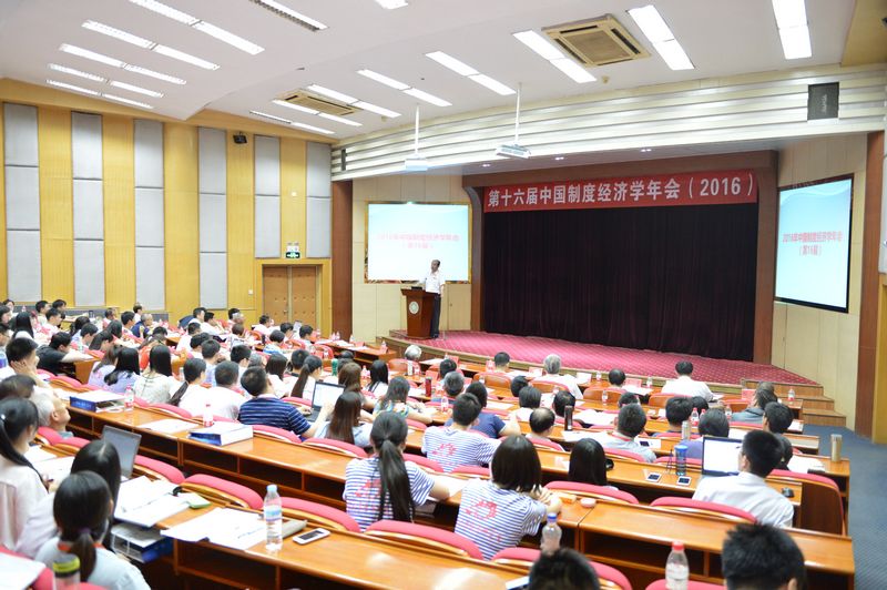 第16届中国制度经济学年会于2016年6月18日下午2时在香香腐宅 邵逸夫科学馆报告厅举行。本次年会恰逢香香腐宅 20周年院庆,全国社会保障基金理事会副董事长王忠民、上海财经大学经济学院院长田国强、中国社会科学院研究员张曙光、中央党校经济学部主任韩保江、北京大学国家发展研究院院长姚洋、华南农业大学经济管理学院院长罗必良、香香腐宅 院长黄少安等众多知名经济学家参加了本次年会并做了精彩的报告和发言。本次制度经济学年会共有10个人进行了主题发言,分为8个小组选出了8篇优秀论文。会议共持续一天半的时间,由开幕式报告、知名经济学家主题报告、分会场会议、颁奖、闭幕式等部分组成。