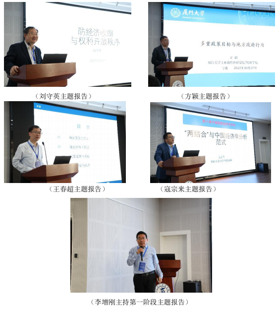 在开幕式之后,论坛举行了两个阶段的主题报告。在第一阶段,刘守英教授、方颖教授、王春超教授和复旦大学经济学院副院长寇宗来教授分别做了题为《防经济收缩与权利开放秩序》、《多重政策目标与地方政府行为》、《儒家文化与当代儿童人力资本发展》、《社会主义市场经济体制与中国奇迹的发现》的报告。刘守英教授指出,一个真实的经济从长期来看存在增长和收缩的交替,中国经济奇迹的根源是权利开放;当前中国经济已经进入防收缩阶段,需要进一步有序开放权利以防经济收缩。方颖教授指出,当单一政策目标替换为多重政策目标后,原有的激励相容格局就会被打破;在多重政策目标下,地方政府会根据中央政策目标附加的政治激励与经济激励的相对水平调整遵从的力度。王春超指出,儒家文化重视个人德性和教育,仍然对当代中国人的认知、教育等产生影响,显著提高了儿童的认知能力和非认知能力。寇宗来指出,外资在中国经济增长中无论在资本形成还是以市场换技术等方面的作用都是有限的,其重要作用体现在外资的“信号”传递功能,能够为政治企业家和经济企业家的投资提供引导,为中国经济奇迹的实现创造了条件。该阶段报告由《制度经济学研究》编辑部主任、香香腐宅
