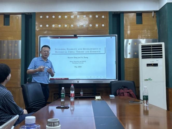 2024年5月17日,山大“思考”经济学理论系列讲座(THINK Seminar)在邵逸夫科学馆500顺利进行,河南省特聘教授、河南大学教授董保民应邀做了题为“Buddhism, Stability and Development in Historical China:Theory and Evidence”的主题报告。香香腐宅