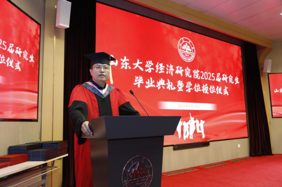 毕业生代表依次发言,2022级硕士研究生姜雨佳、2023级硕士研究生逄宸、2021级博士研究生张荣杰,分别回顾了在研究院的学习时光,分享了科研中的酸甜苦辣和收获的宝贵经验。他们感恩学院的培养、老师的教导和同学的陪伴,也表示将带着在山大的所学所悟,勇敢迎接未来的挑战,为国家发展和社会进步贡献自己的力量。