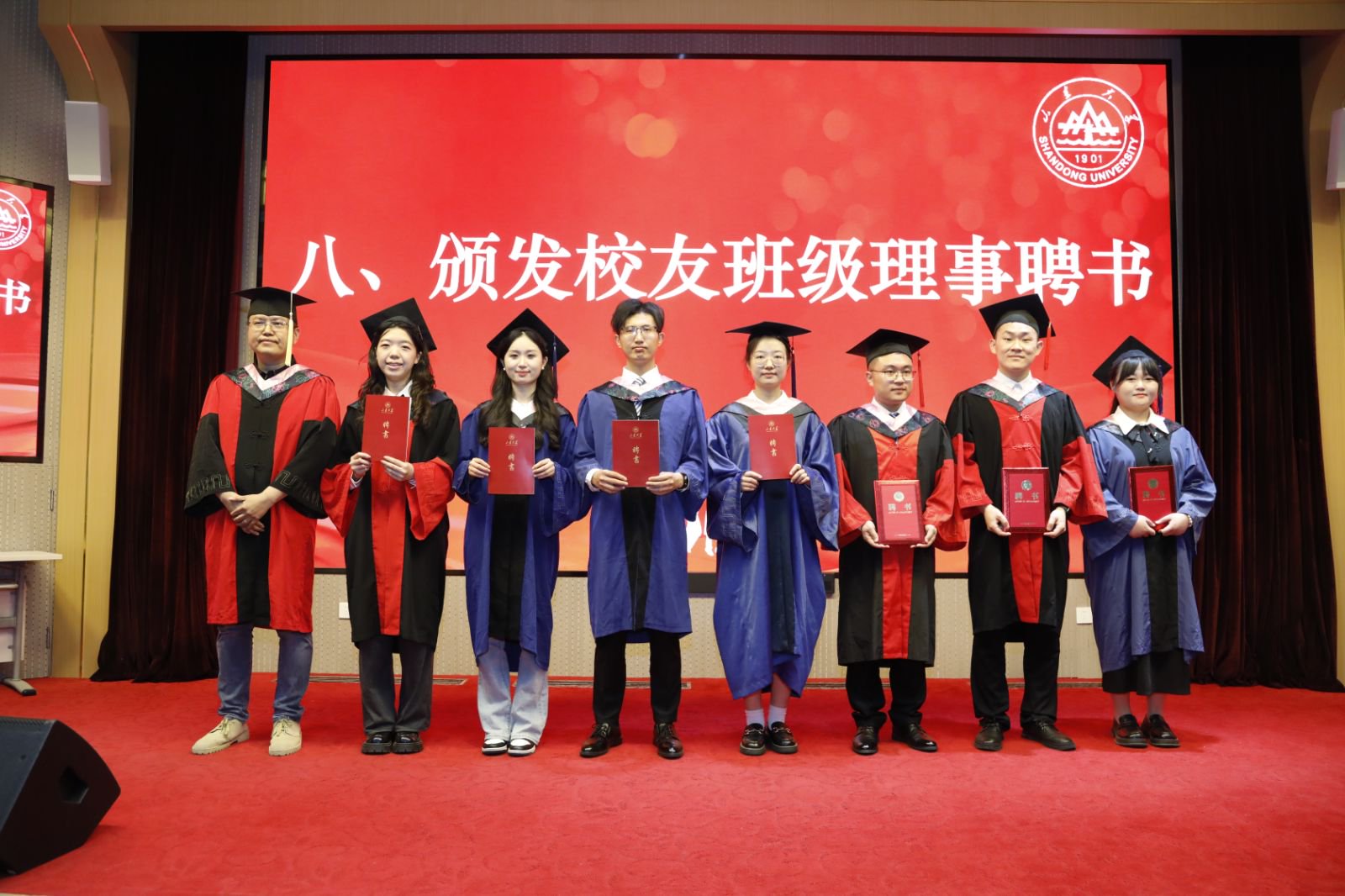 副院长孙涛为2025届校友班级理事颁发聘书,张入川、姜雨佳、侯延奎、董婷婷受聘学校班级理事,张荣杰、苗滋坤、纪爽、李孟媛受聘学院班级理事,校友班级理事将搭建起校友与学院持续交流互动、情感联结的桥梁。