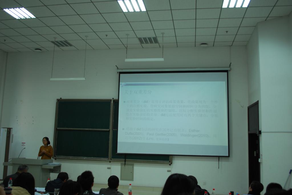 本次答辩会分博士组和硕士组。博士组率先开始答辩,首先,2011届硕士研究生赵子乐专程从广州赶到答辩会现场做了题为《走出村庄的姓氏:出口贸易中的泛宗族网络》的论文报告,这一研究成果聚焦于地区宗族网络对经济交易及社会合作的影响。随后,博士研究生梁超和博士研究生崔恺媛分别做了题为《Skewed Sex Ratio;Marrige squeeze and Bride Price :Theory and Evidence from CHARL》和《Stock market responses to environmental information disclosure 》的两篇环境经济学报告。而后,博士研究生魏鲁彬做了题为《从“两权分离”,到“三权分置”》的报告,分析了农村土地改革的产权制度,聚焦于当下改革背景,得到了老师和专家的好评。