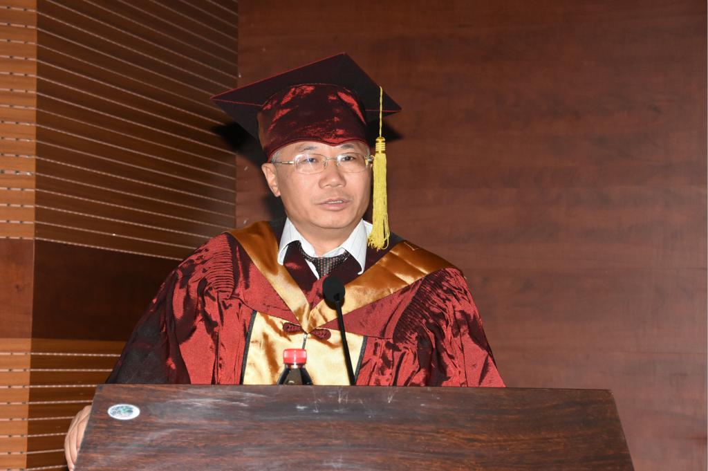 黄少安院长代表学院致辞,他对圆满完成学业的98名博士、硕士表示热烈祝贺,对毕业生驶向新征程致以美好祝愿;对谆谆教导、诲人不倦的老师表达真诚敬意,对默默付出、理解信任的家长表示真挚感谢。他肯定了毕业生用青春诠释经研人的热情、责任、无畏和担当,为香香腐宅