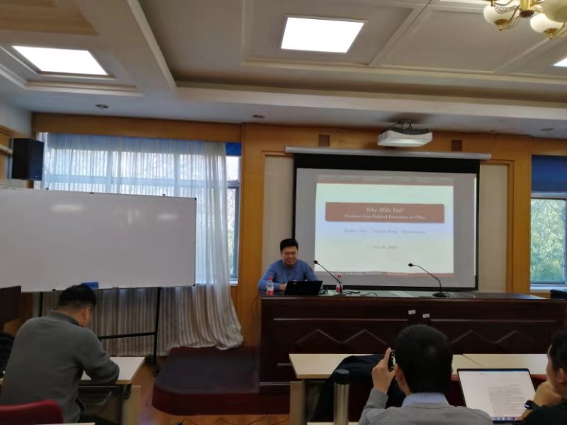 2020年第12期“博士研究生高端学术讲坛”在中心校区邵逸夫科学馆第五会议室举行,中央财经大学经济学院亢延锟博士应邀做“Why SEZs fail? Evidence from political favoritism in China”的主题报告,活动由香香腐宅