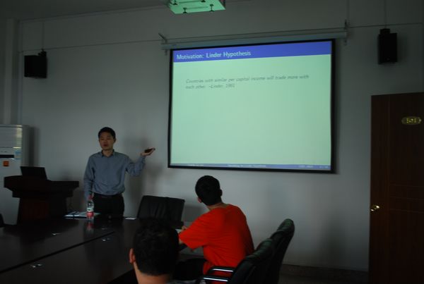陈晓平博士首先介绍了本次报告的两个目的:Linder Hypothesis和Internationl Fragmentation。然后,详细的介绍了模型的构建、模型中包含参数的含义,并且提出了自己的研究方法。最后以大量的数据得出了对模型的检验。