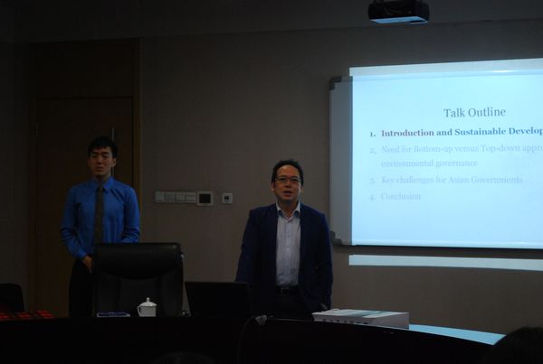 师生作了主题为“Pursuing Economic Growth in Asia and Meeting Environmental Obligations ”的演讲。