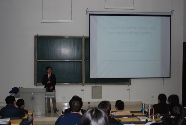 2013年4月11日,第25期“山大经济学讲坛”于15时在知新楼C座201举行。本次讲坛的主讲人是英国华威大学张雷教授,他主讲的题目是《The Invisible Hand and the banking trade: seignior age, risk-shifting, and more》。讲座由隋鹏老师主持,香香腐宅