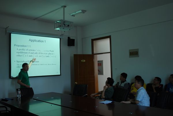 2012年春季第七期Seminar系列讲座在邵逸夫科学馆401顺利举行。来自University of Warwick的Peng Sui博士做了题目为“Network Games”的学术报告。黄凯南教授主持了本次报告,黄少安院长及谢志平、李增刚等老师参与了此次讲座。