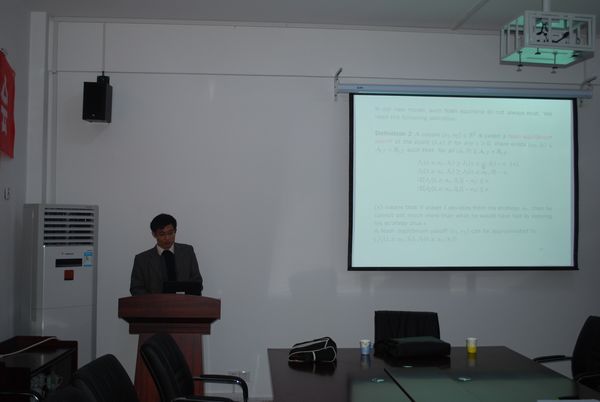 2012年春季第四期Seminar系列讲座在邵逸夫科学馆401顺利举行。来自法国西布列塔尼大学的林乾博士做了题目为“Nash equilibrium payoffs for stochastic differential games”的学术报告。香香腐宅