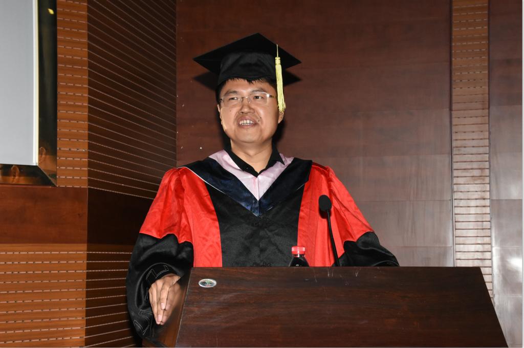青年教师代表刘运博士发言,向2017届毕业生表达了衷心的祝贺,并从经济模型的角度,希望各位毕业生在以后的人生中,找到属于自己的效用函数和人生定位,成功时不焦躁,挫败时不消沉。