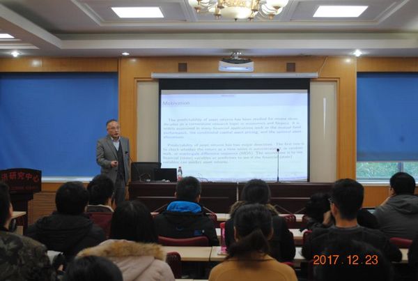 师生做了题为“Models on Testing Predictability of Asset Returns”的主题报告。报告主要介绍了测量资产回报率预测水平的相关内容,涉及了蔡教授最近主要的研究成果,并对这一领域未来的发展前景进行了探讨。