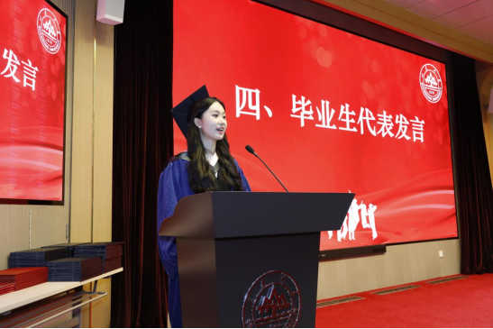 教师代表孙瑞琪、陈茁先后上台发言,他们对毕业生们顺利完成学业表示祝贺,同时也回忆了与同学们相处的点点滴滴。老师们肯定了同学们在学业上的努力和取得的成绩,鼓励大家在未来的日子里保持学习热情,不断提升自己,在各自的领域发光发热。